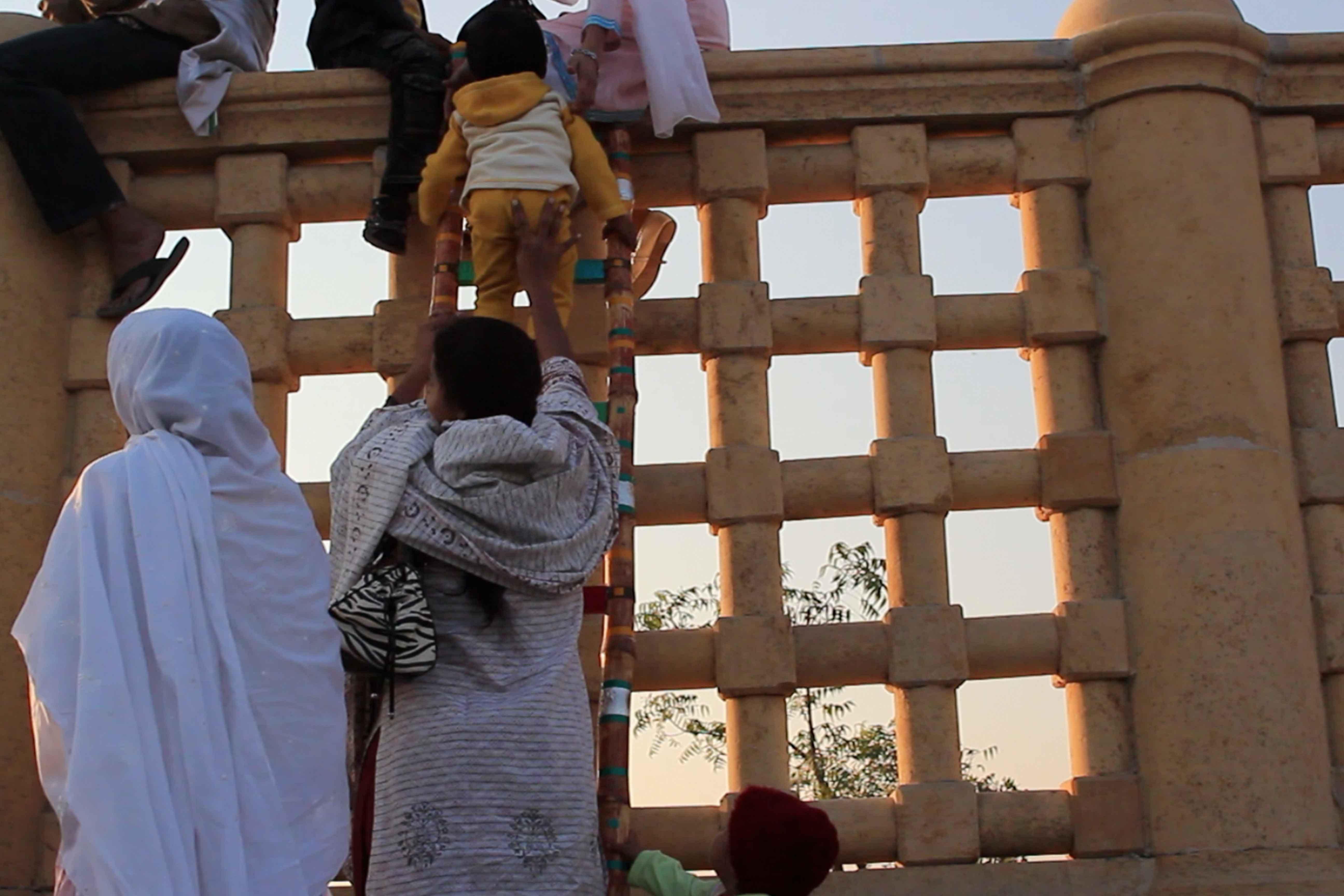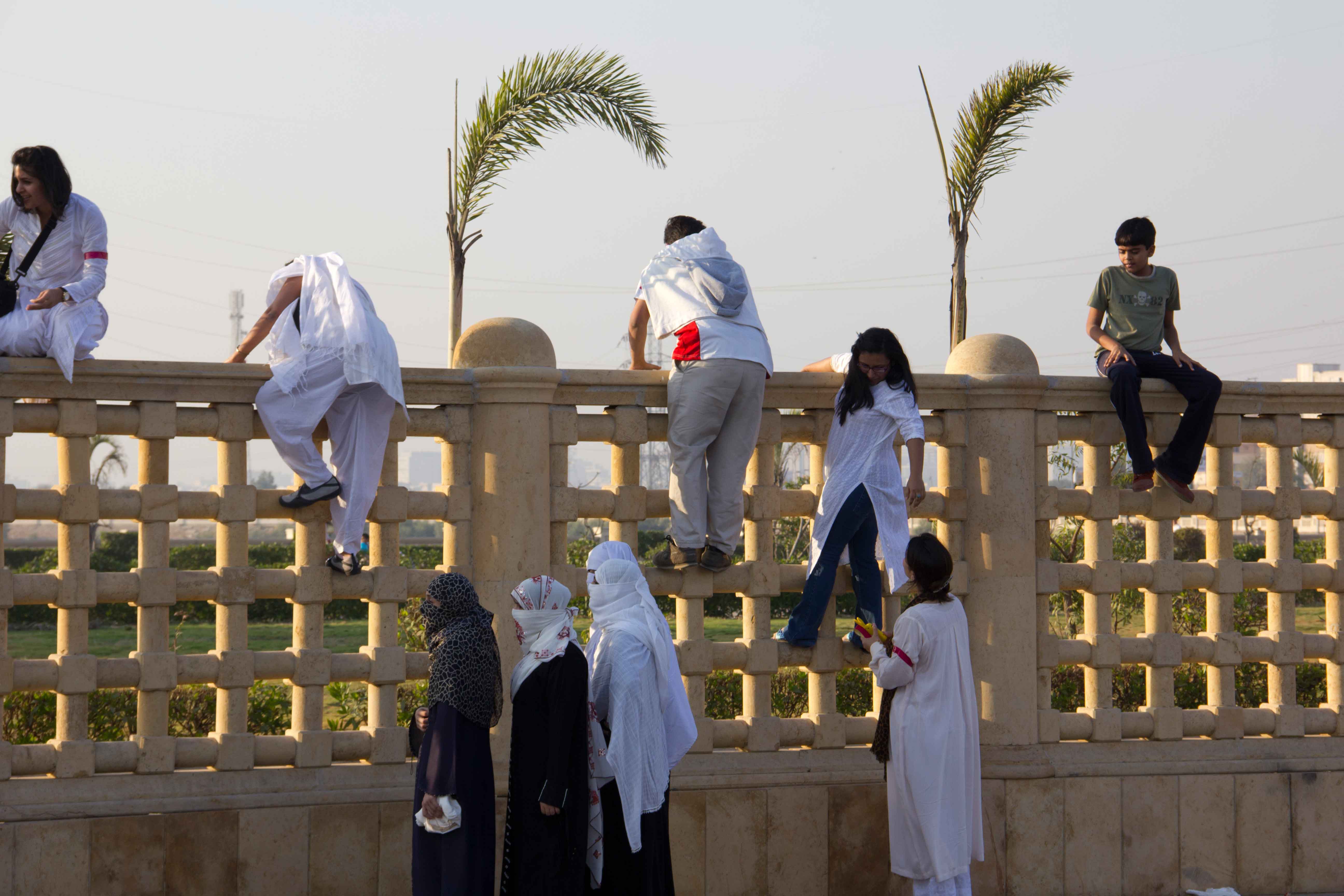 In response to Karachi’s increasingly privatized, securitized and segregated public spaces, the Tentative Collective organized a group gathering on top of the boundary wall around Shaheed Benazir Bhutto Park. This is one the city’s most beloved parks that has restricted public access by building a boundary wall and charging an entry fee. Some 50 people from different parts of the city including the nearby migrant colony (Shirin Jinnah) joined us at 4:00 pm on a Sunday to drink chai and hang out in an unusual gathering place. Our action coincided with International Migrants’ Day and was documented and tracked by Immigrant Movement International led by artist Tania Bruguera in Queens, New York.