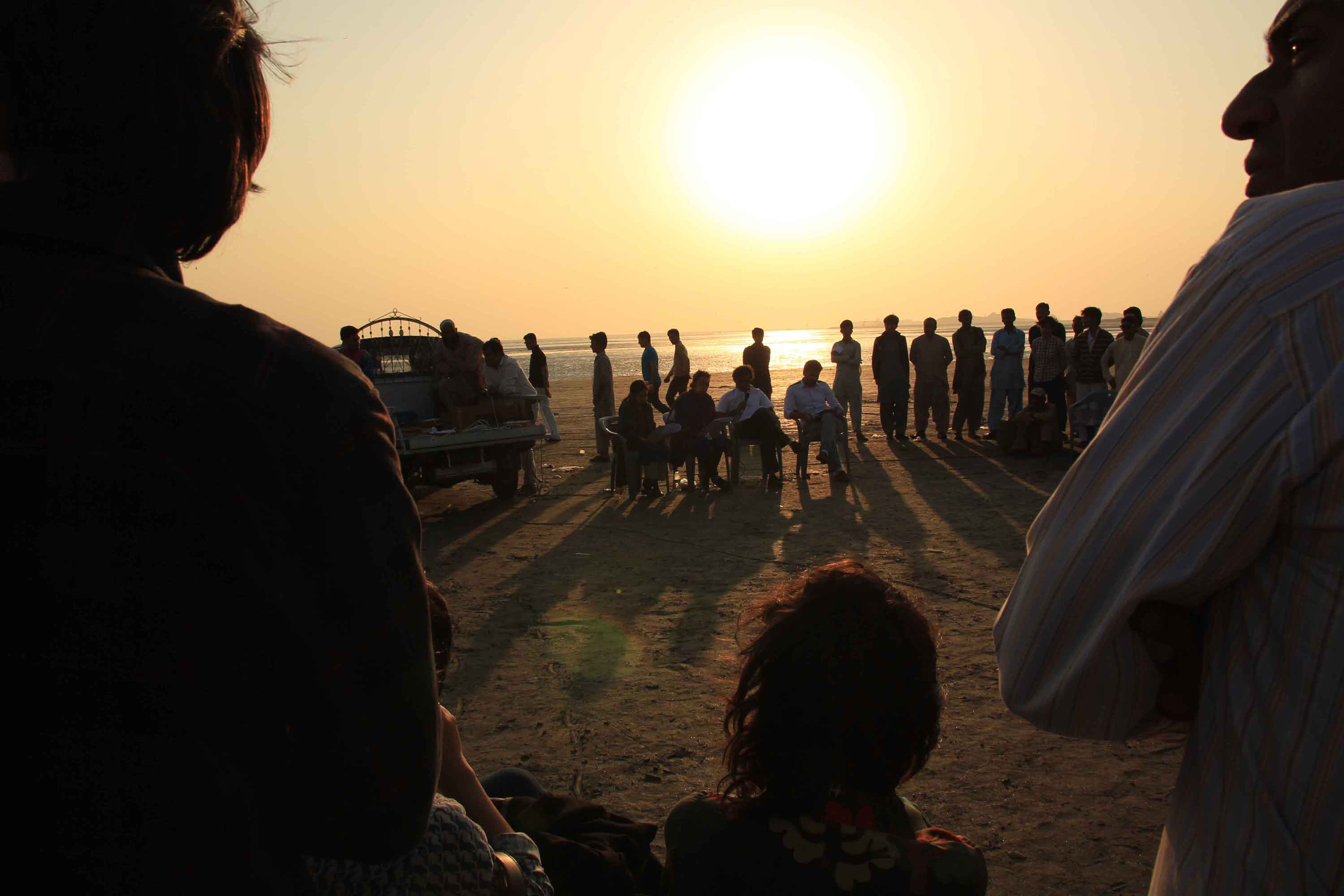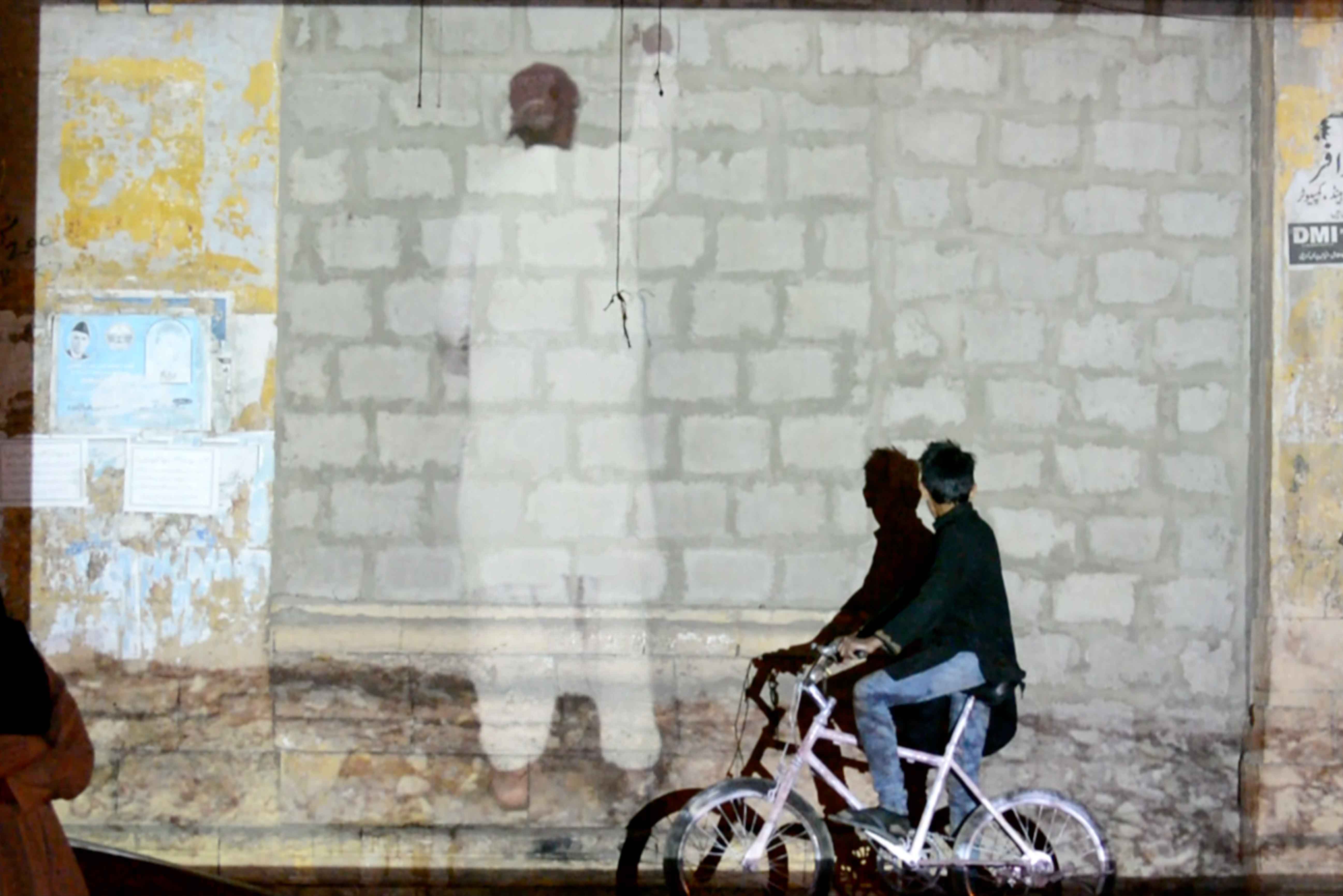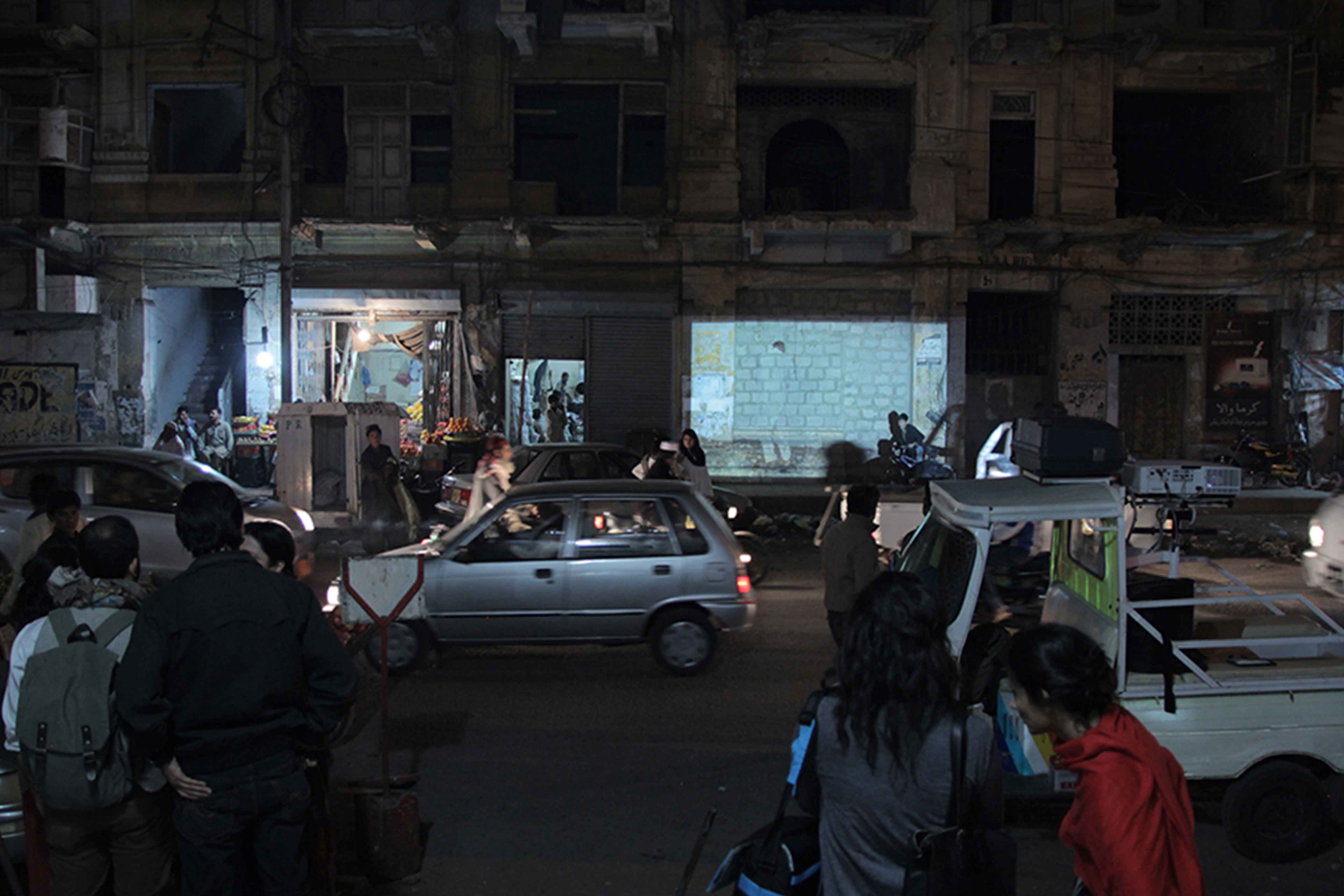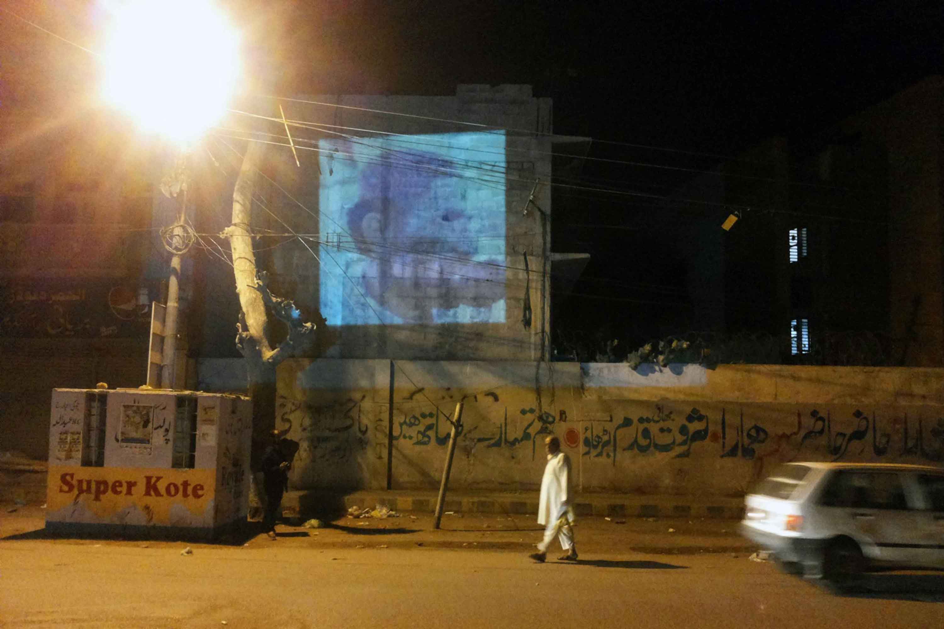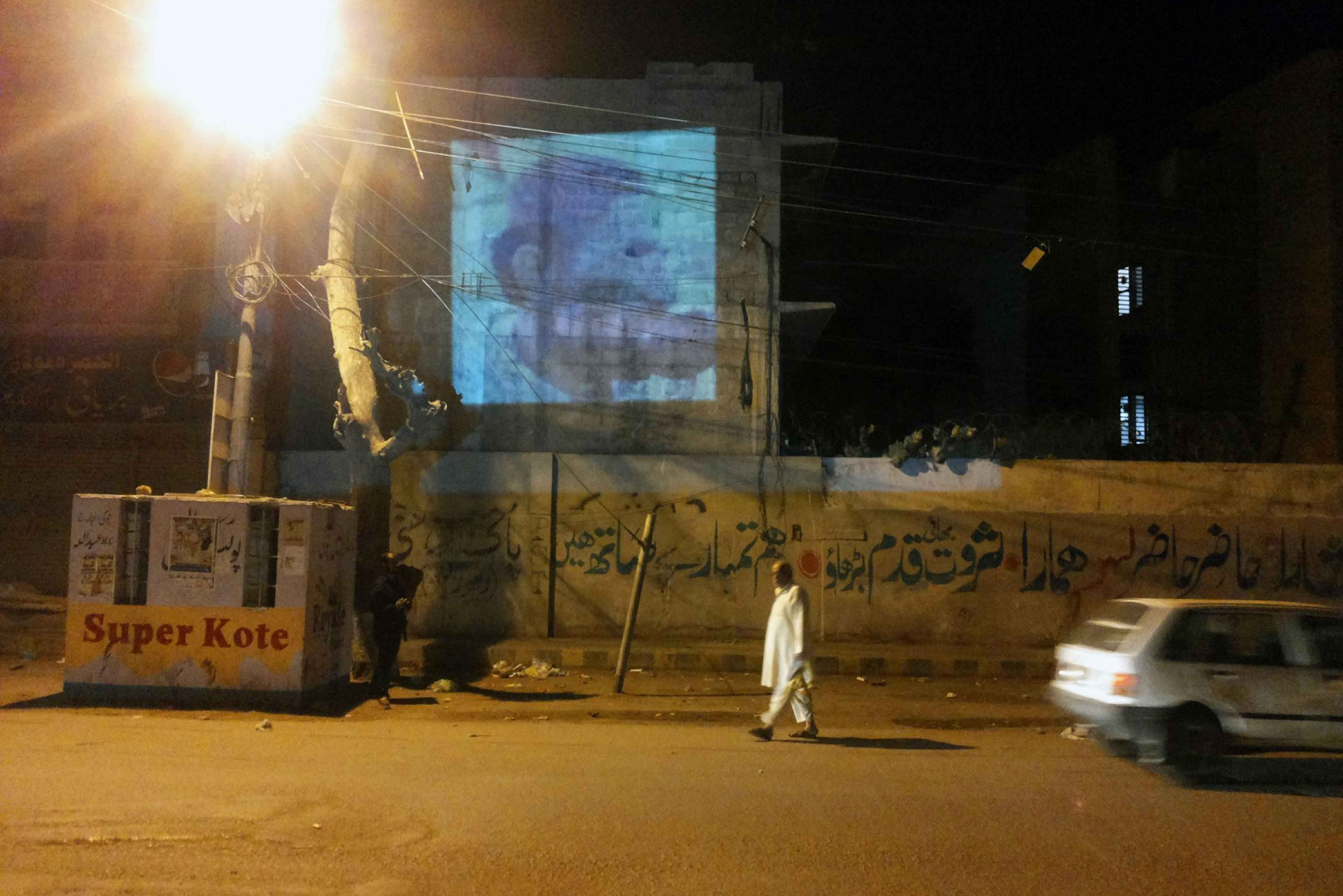 Projections is a series of collaborative experiments in the possibilities and limitations of public art practice in Karachi. Using luminous imagery, we created ephemeral events/moments in various public spaces – commercial markets, intimate residential areas, defunct cinemas, under construction development sites and spaces in transition – in an attempt to imagine and project ourselves, our histories and futures onto the city's surfaces.