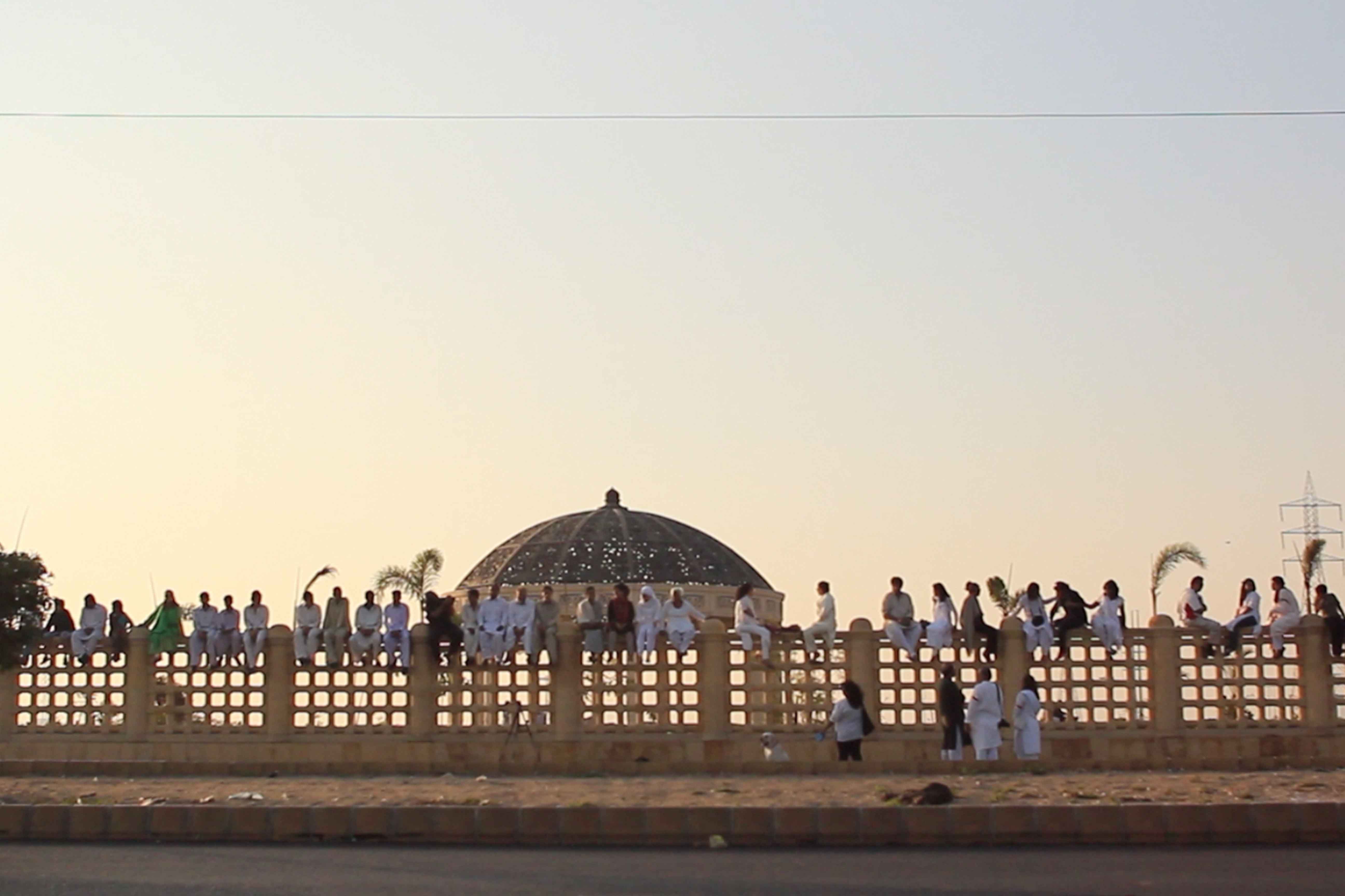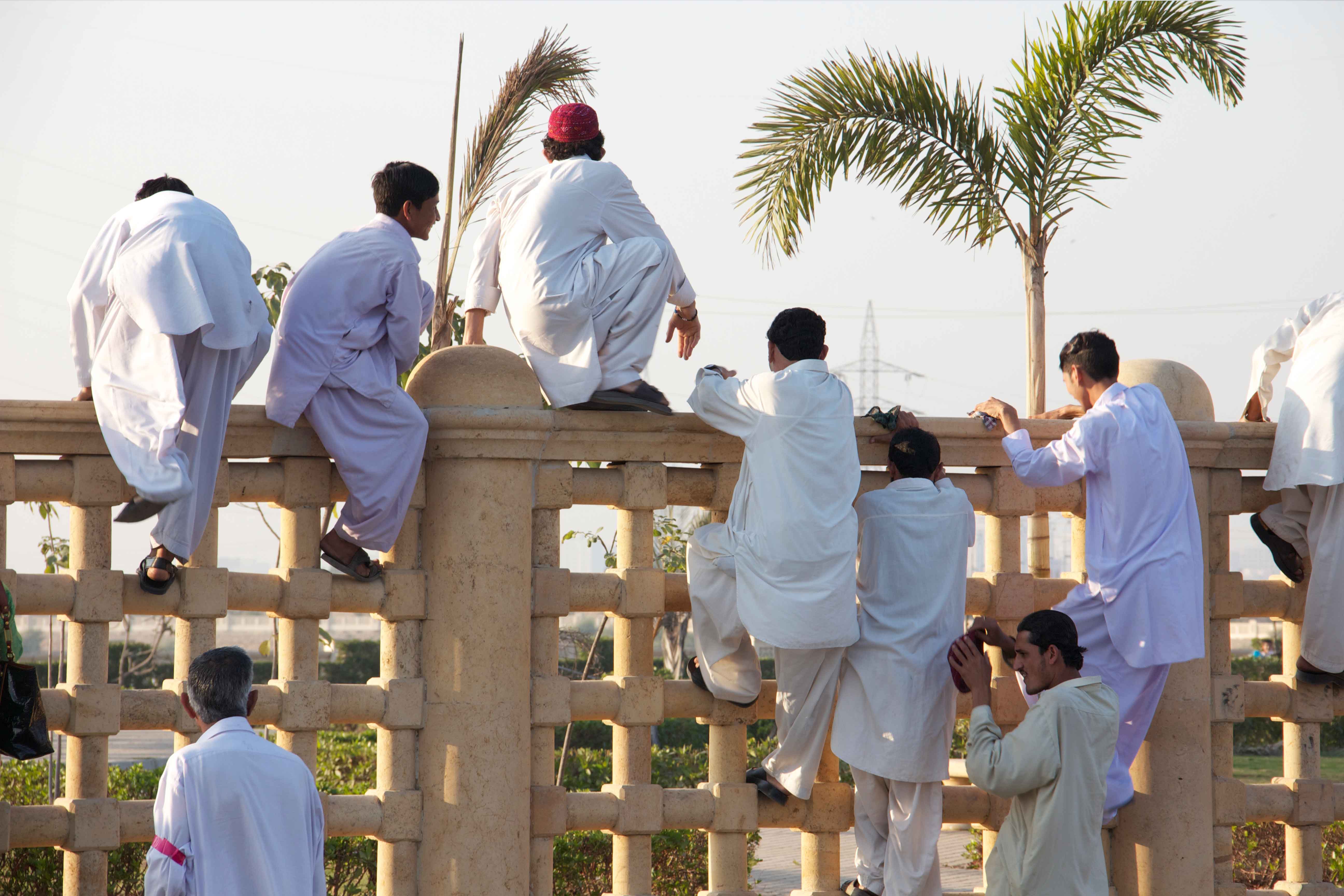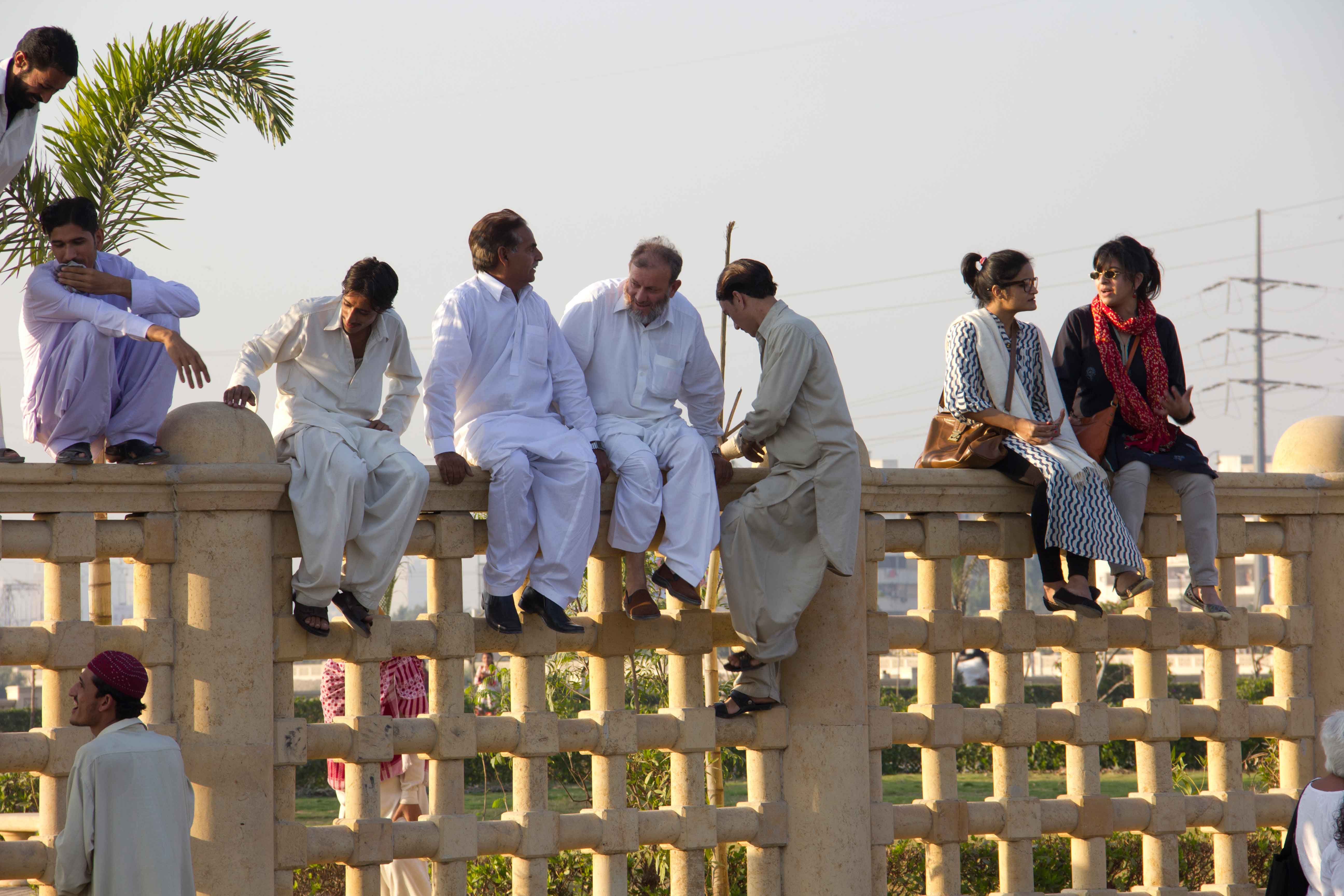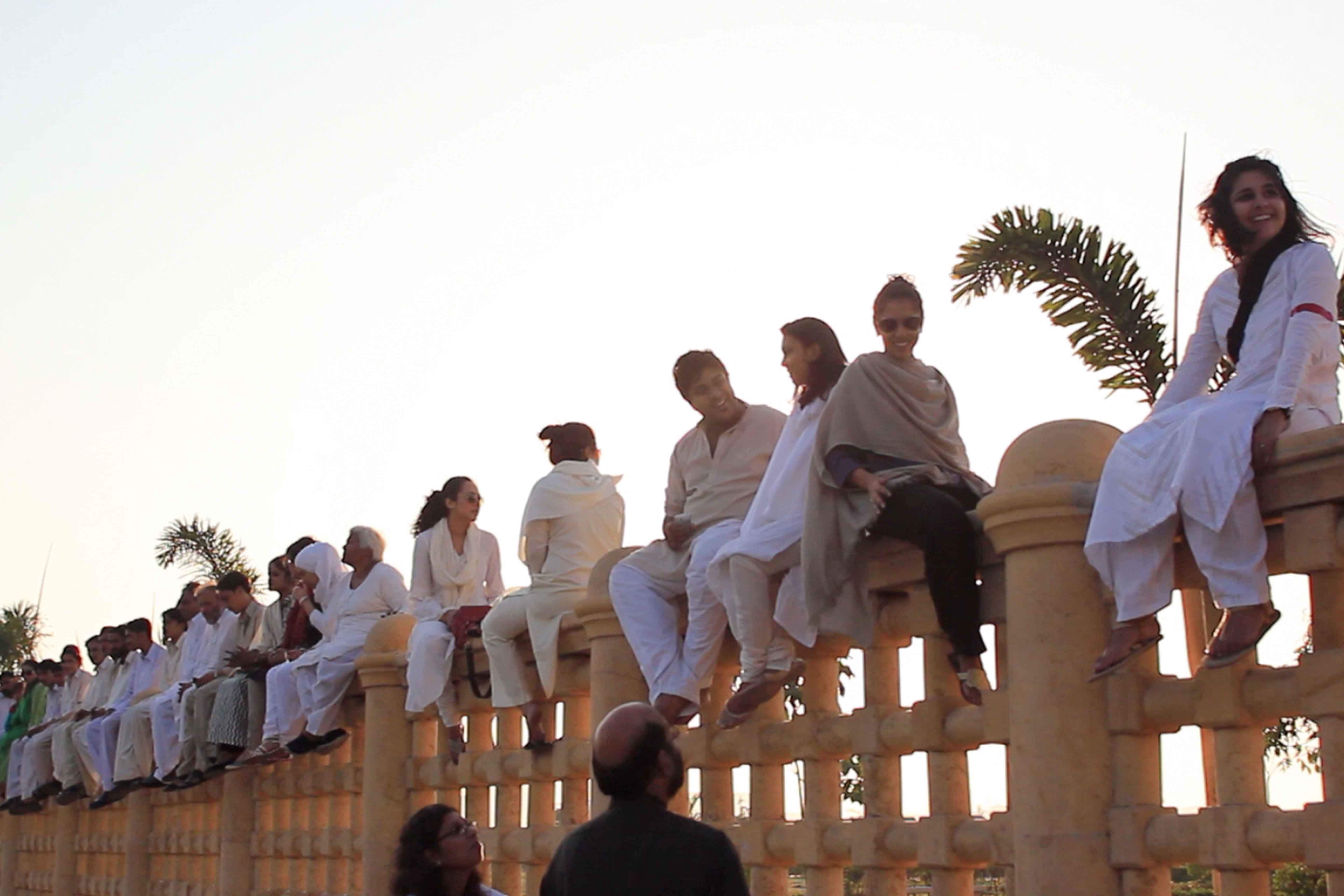 In response to Karachi’s increasingly privatized, securitized and segregated public spaces, the Tentative Collective organized a group gathering on top of the boundary wall around Shaheed Benazir Bhutto Park. This is one the city’s most beloved parks that has restricted public access by building a boundary wall and charging an entry fee. Some 50 people from different parts of the city including the nearby migrant colony (Shirin Jinnah) joined us at 4:00 pm on a Sunday to drink chai and hang out in an unusual gathering place. Our action coincided with International Migrants’ Day and was documented and tracked by Immigrant Movement International led by artist Tania Bruguera in Queens, New York.