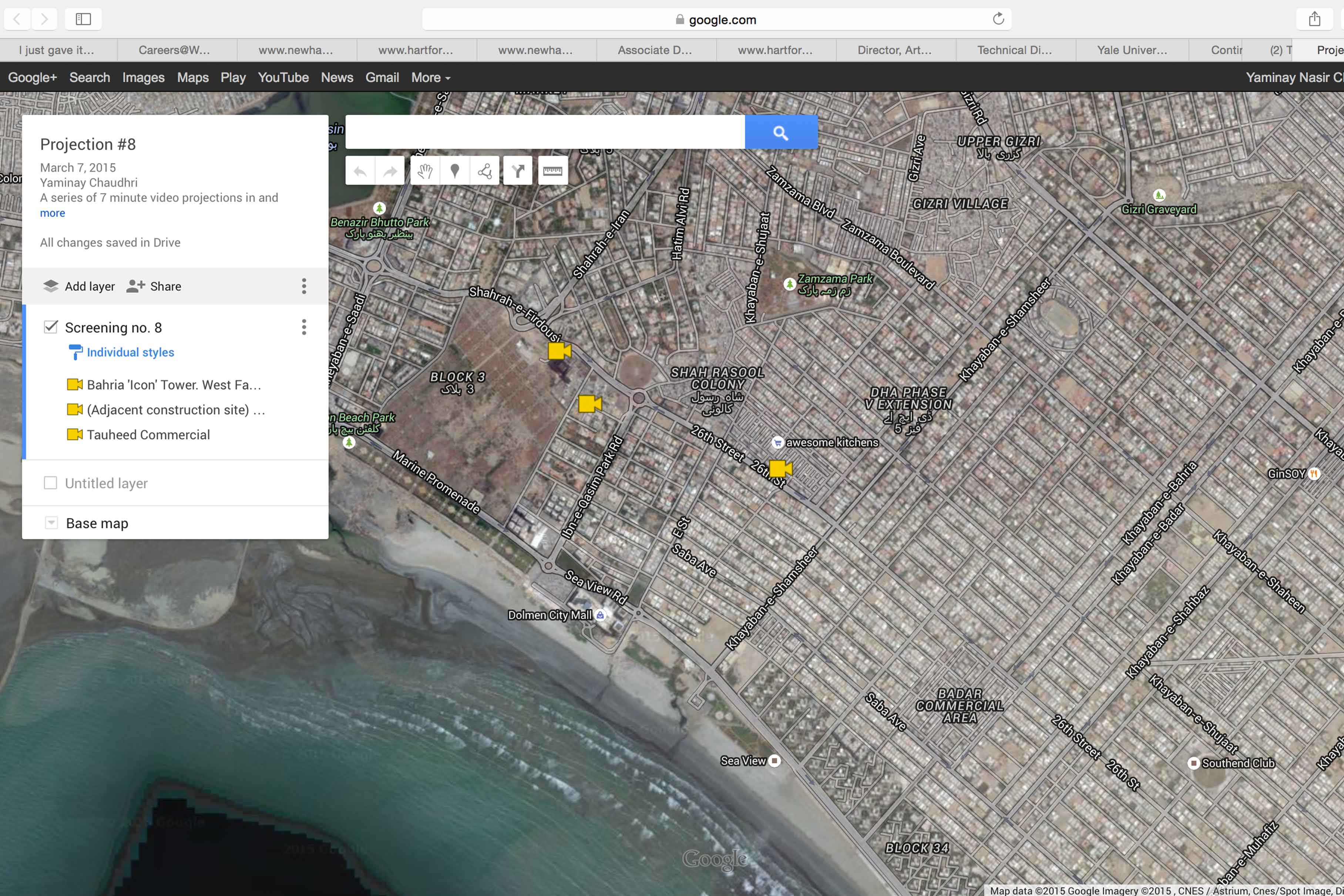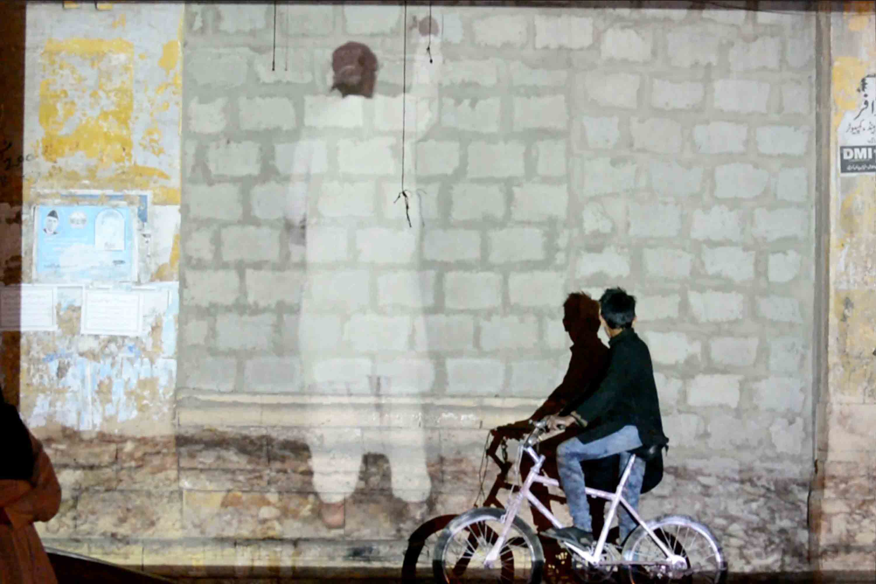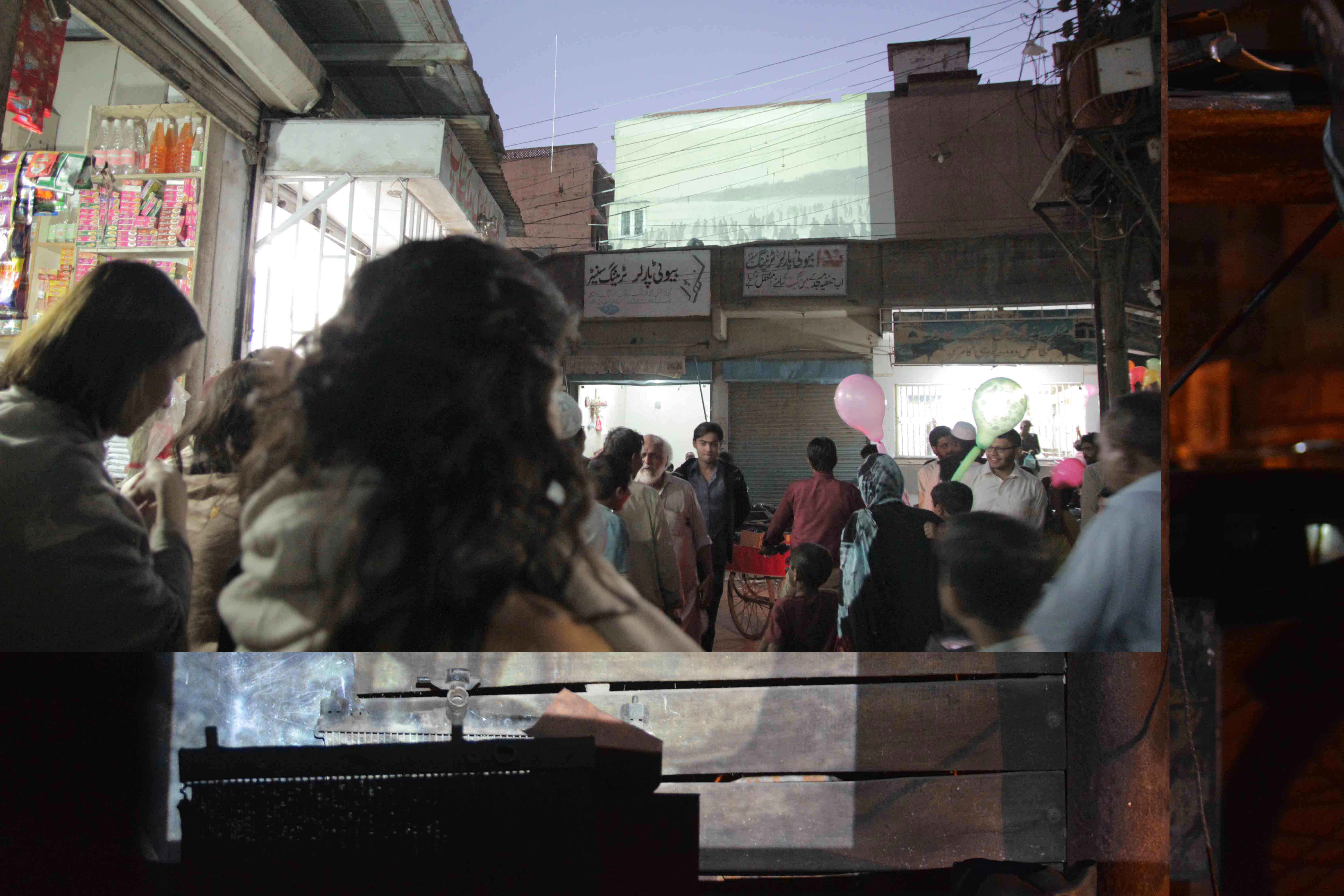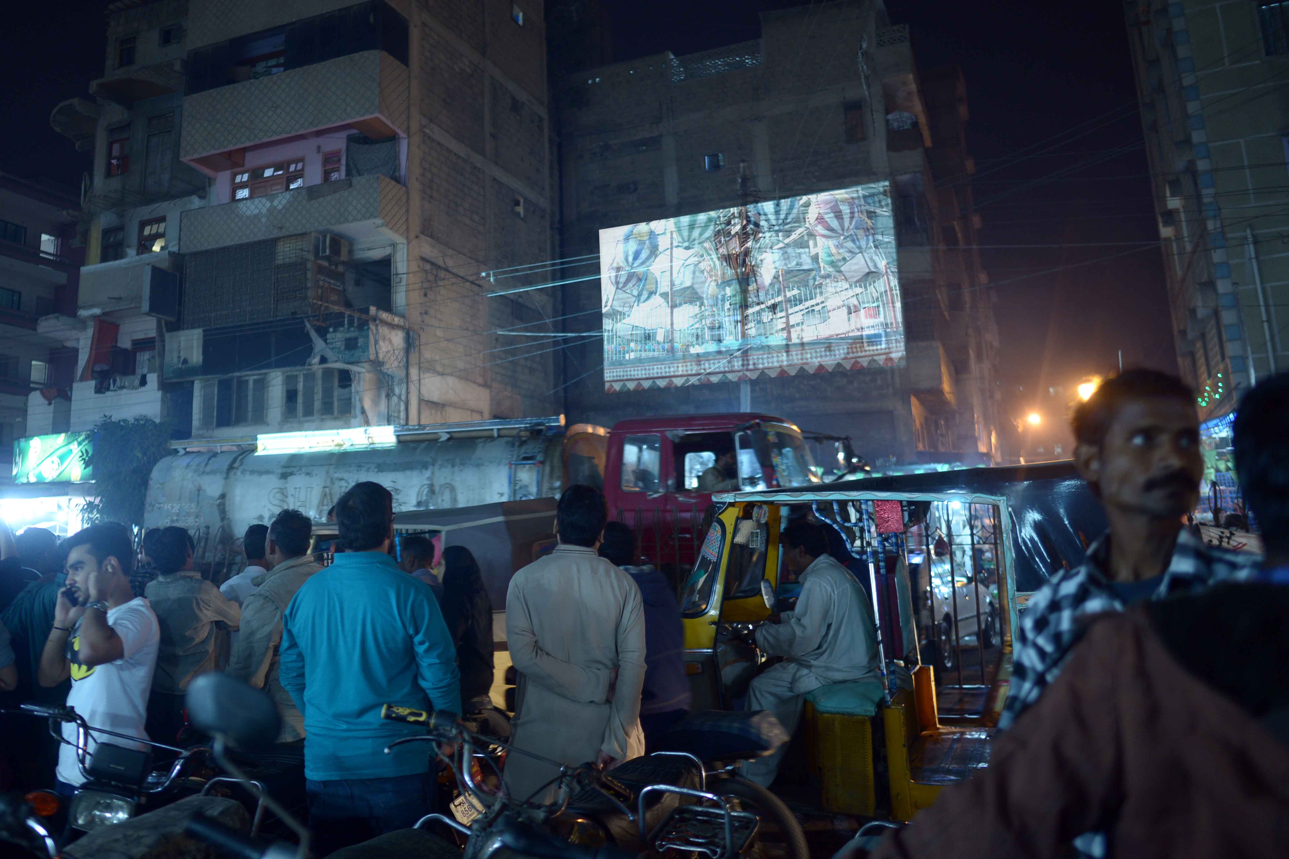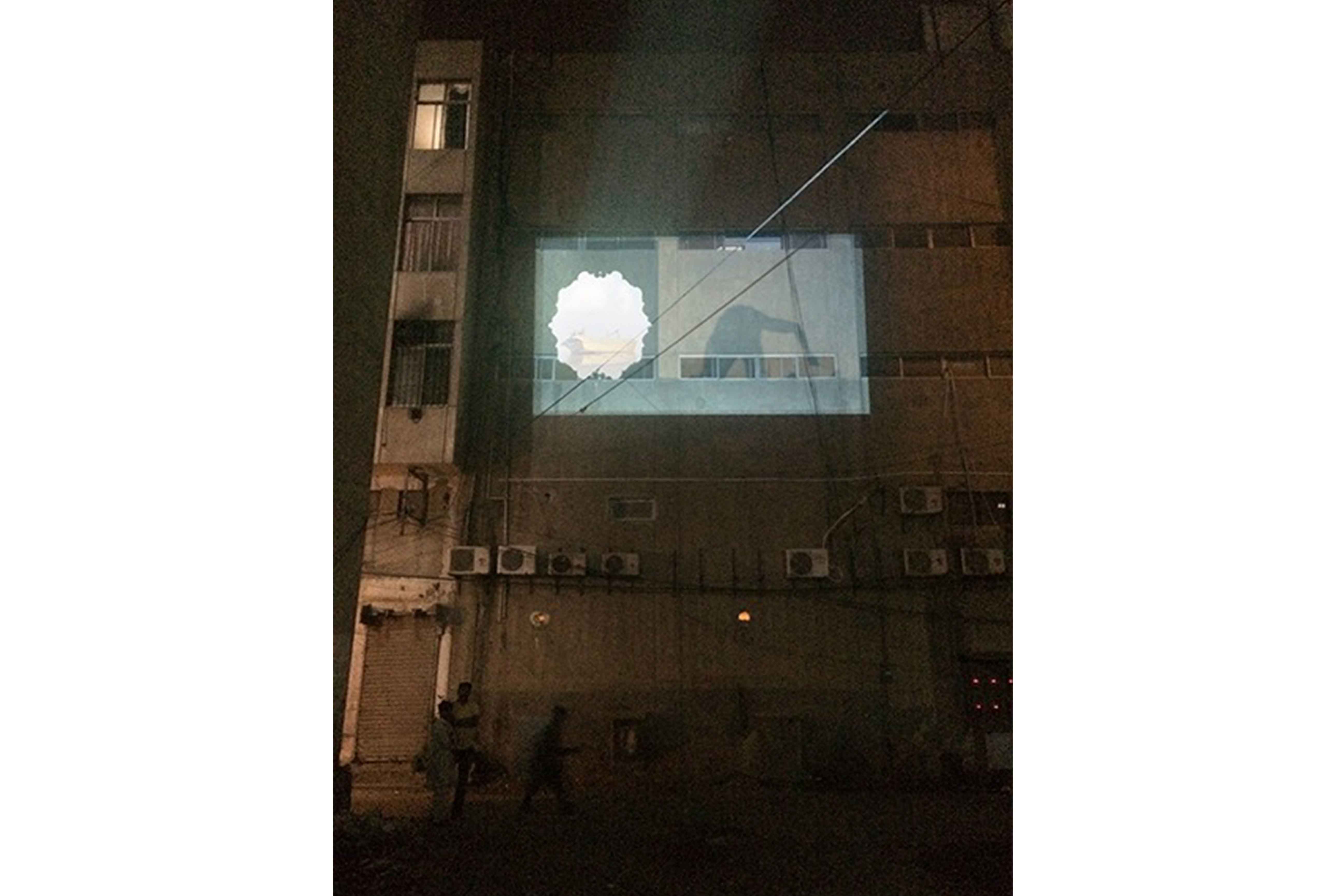 Projections is a series of collaborative experiments in the possibilities and limitations of public art practice in Karachi. Using luminous imagery, we created ephemeral events/moments in various public spaces – commercial markets, intimate residential areas, defunct cinemas, under construction development sites and spaces in transition – in an attempt to imagine and project ourselves, our histories and futures onto the city's surfaces.
